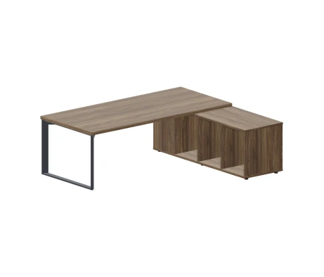 Стол на опорной сервисной тумбе (левый) 180х180х74 Фортум / Fortum Светлый дуб/Белый
